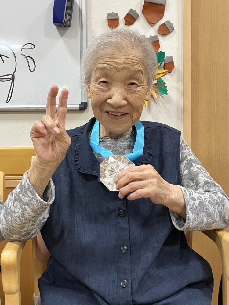 職員からの手作りバースディカードを受け取られ、運動会は無事に終えることができました。