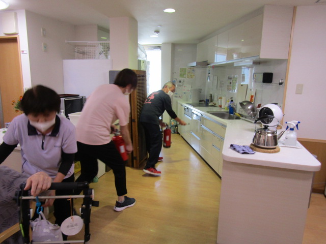 消火できないと判断し、ご利用者様が混乱や転倒されないように、しっかり西ユニットへ避難誘導…