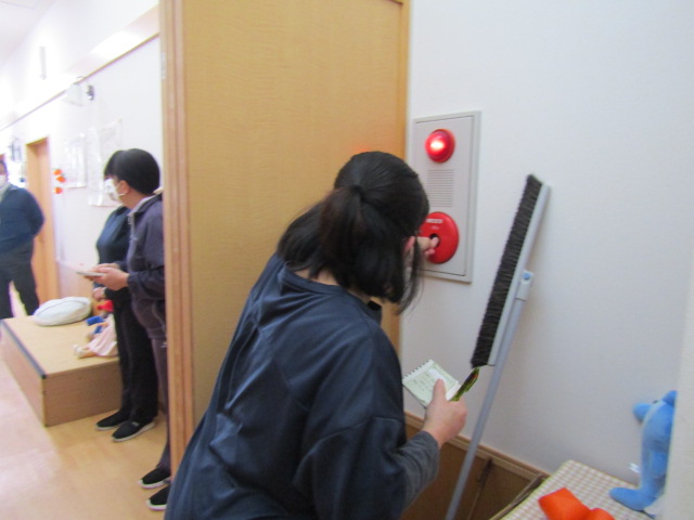 実際に火災報知器のベルが鳴り響くなか、「火事だー」と職員の気迫のこもった声!!