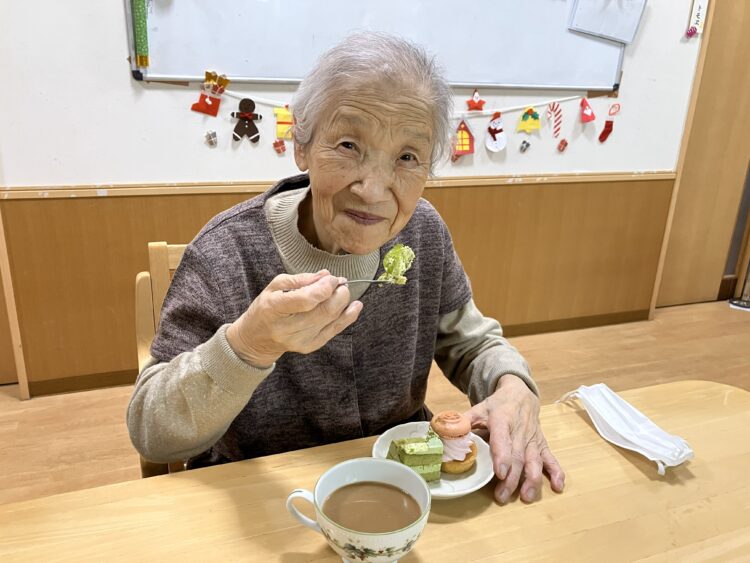 15時のおやつはクリスマスケーキ🍰を食べられました。「可愛いで食べるの勿体ないわー」と言われた方もおられましたが、あっという間食べておられました・・🤣