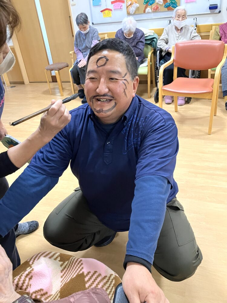 利用者・職員vs管理者で対決も行い、敗者にはバツ×として顔に墨でお化粧させていただきました😁(写真を見ていただいたら分かります・・)