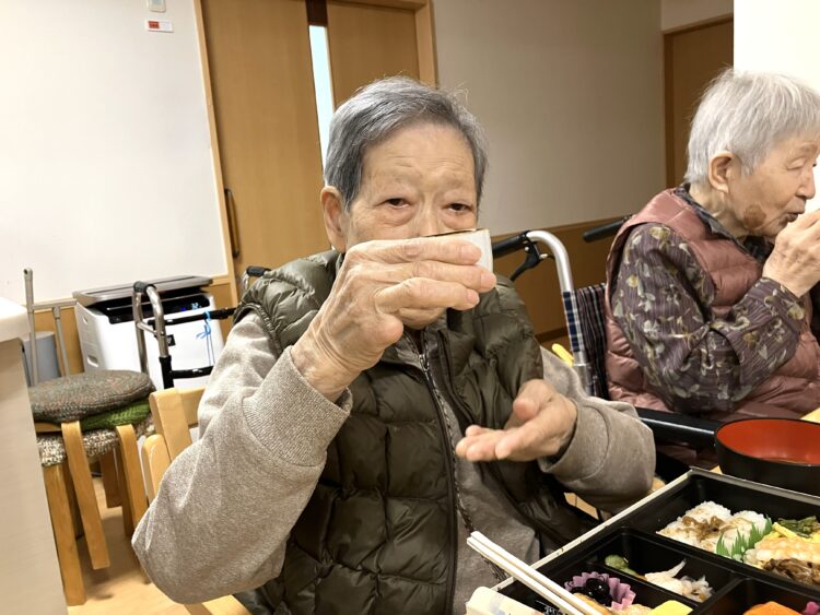 管理者より挨拶をいただき、お屠蘇で乾杯しました。