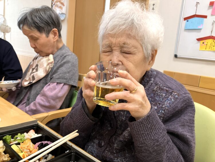 「お腹いっぱいやけど入るかな、残したらもったいないでな、食べるで」と、お酒、ビール、ジュースを片手に皆さん残される事なく食べられました。