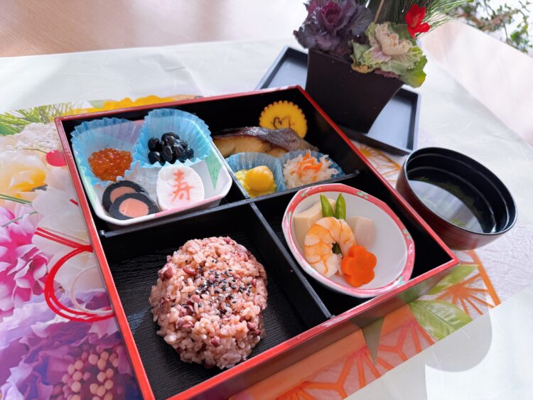 朝食にお雑煮をいただき、昼食は日清医療食品さんによる手作りのおせち料理です。