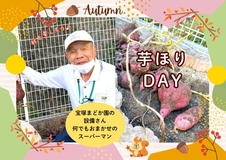 (‘ω’)ノ 宝塚まどか園の小さな畑に今年もさつまいもが実りました。