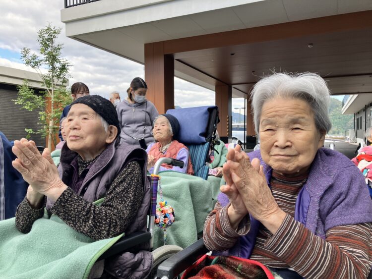 ご利用者に、2階のテラスからも見ていただき、まるでライブ会場のようでした😳✨