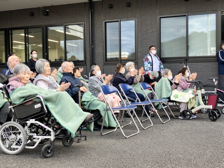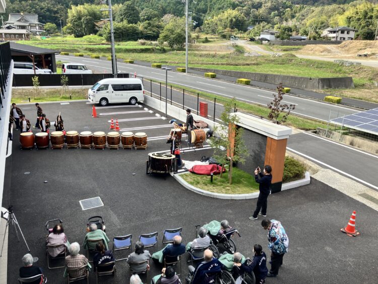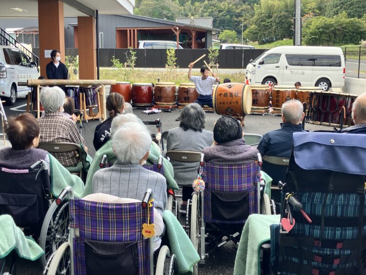 生徒様の躍動感ある動きや、迫力満点の音を目の前にして、一緒に太鼓を叩く動きをしたり、音に合わせてリズムにのったり、ご利用者の楽しんでいる様子が見られました。