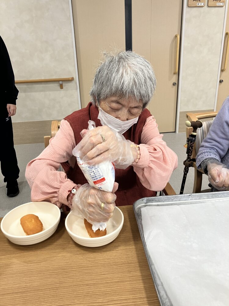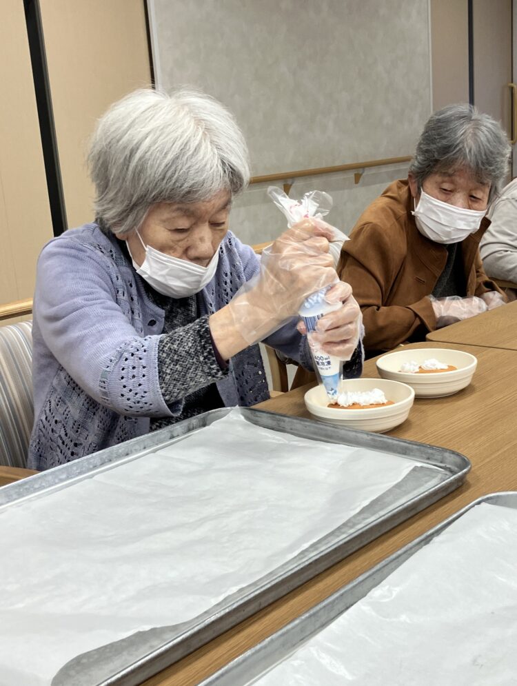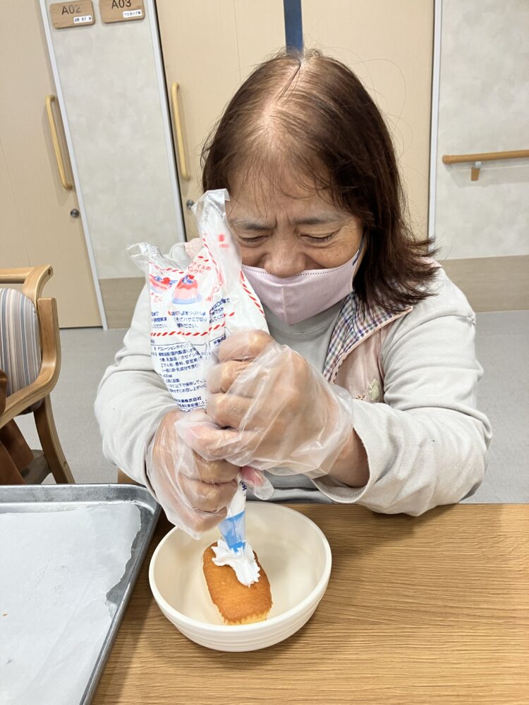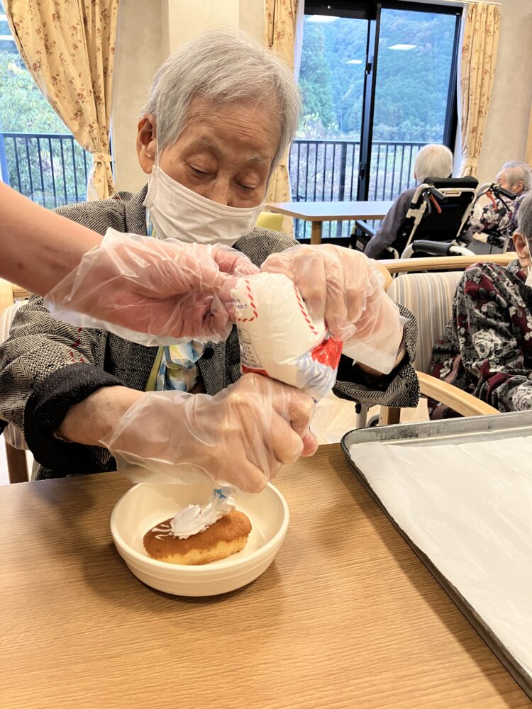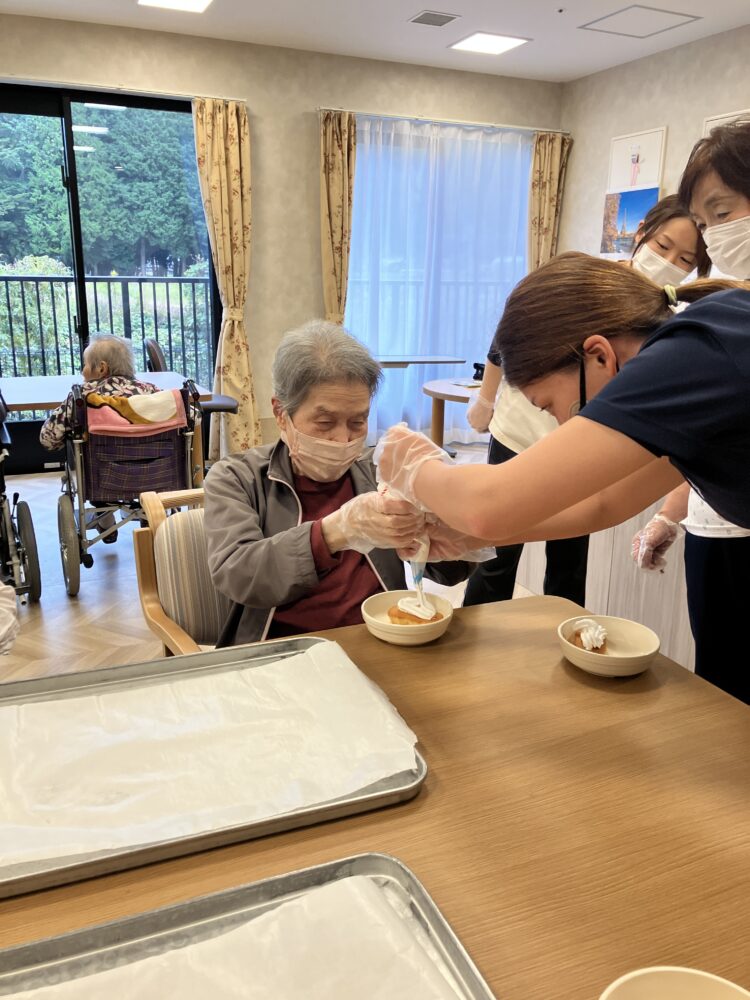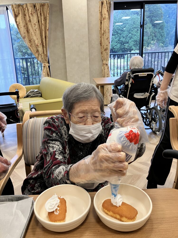 11月5日に、ふわふわのホイップをしぼって、ケーキ・プリンに飾りつけをしていただきました🍰🍮