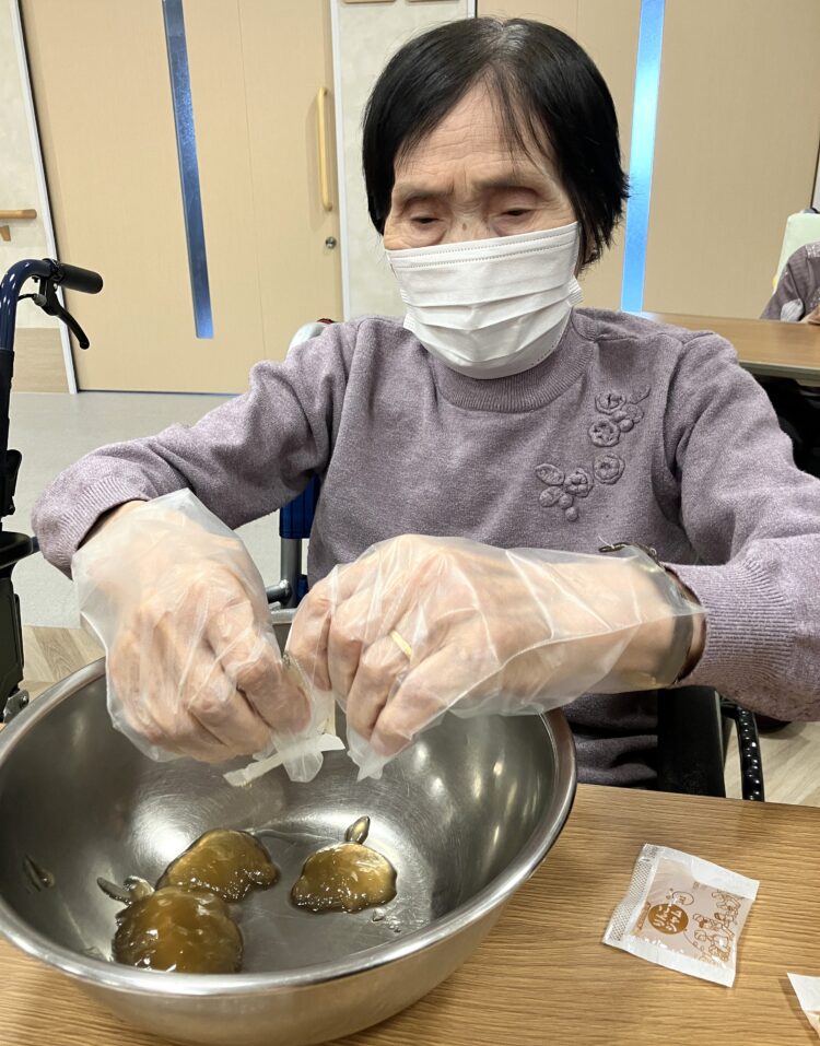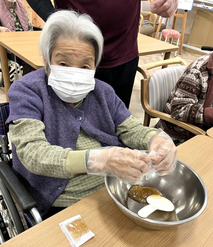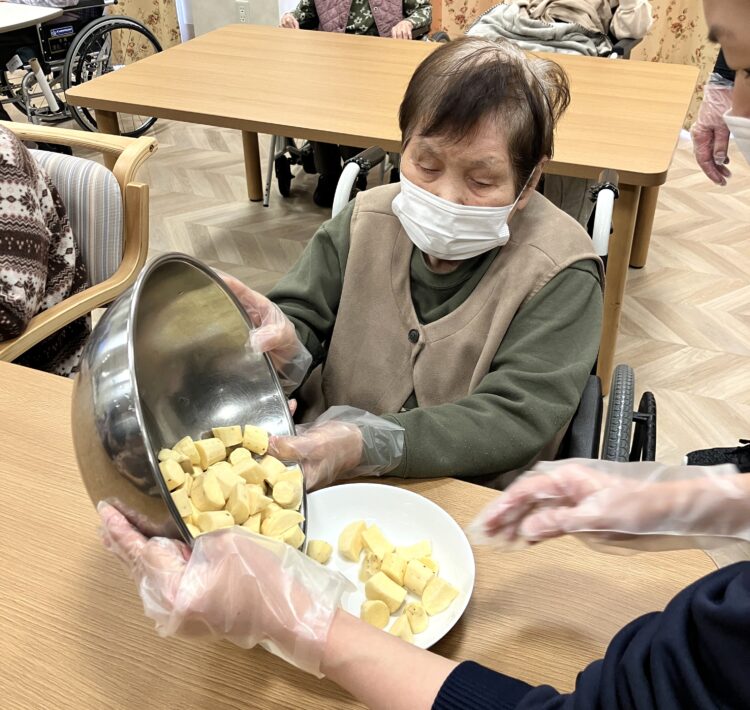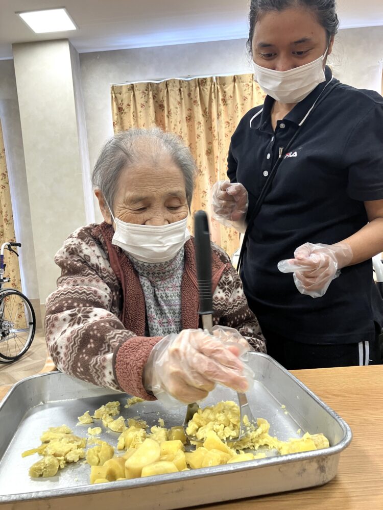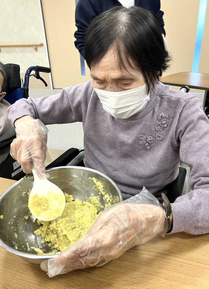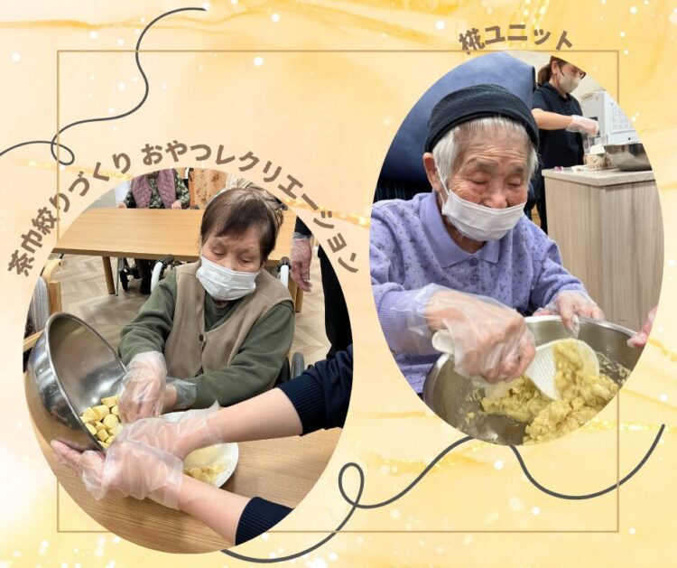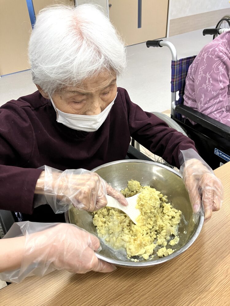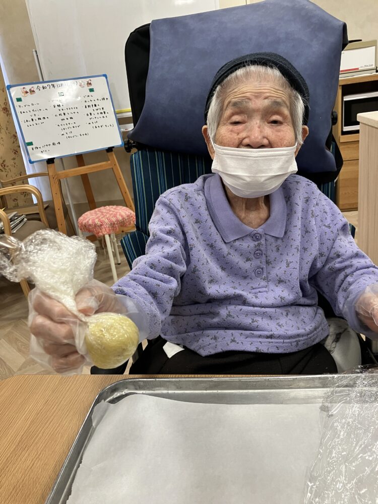 椛ユニットでおやつレクリエーション 甘いさつまいもで茶巾絞り🎶