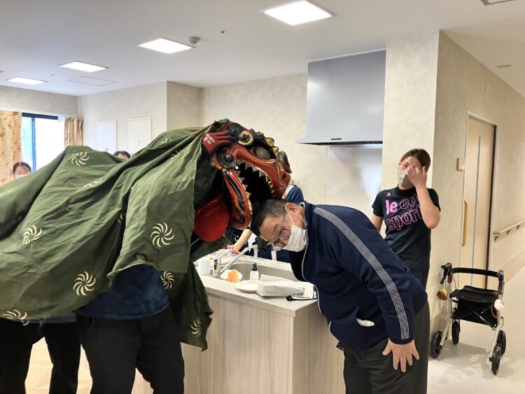 皆さん頭をかまれて、無病息災を祈りました。