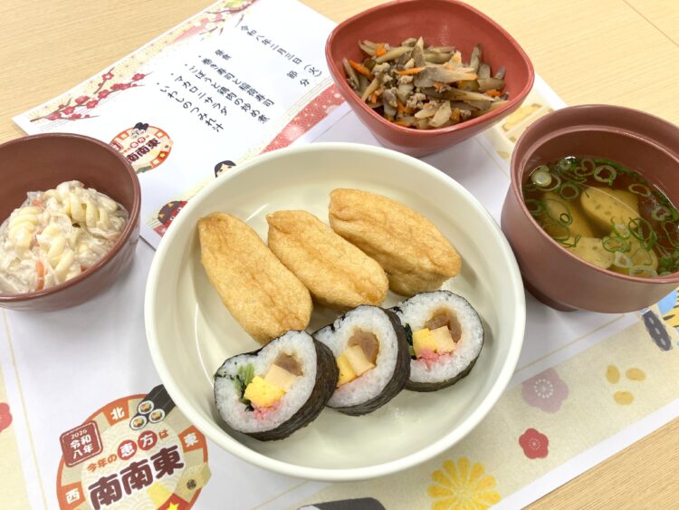 節分の昼食メニューは、巻き寿司と稲荷寿司です👹👹