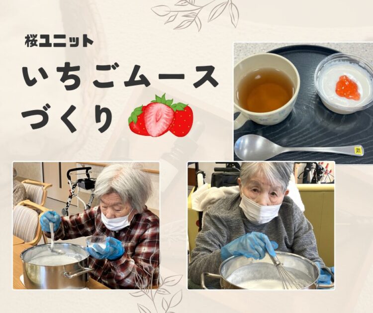 マシュマロ、牛乳、いちごジャムを使ってムースを作ります。