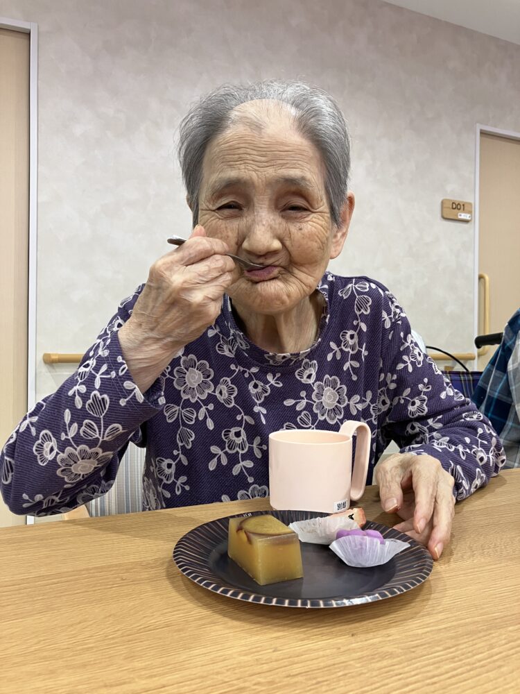 美味しい和菓子と芋ようかんを味わっていただきながら、職員それぞれが自主練を積み重ねた手品を披露しました。