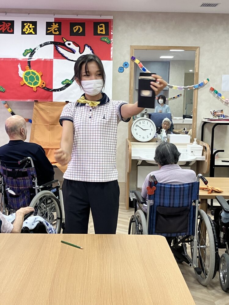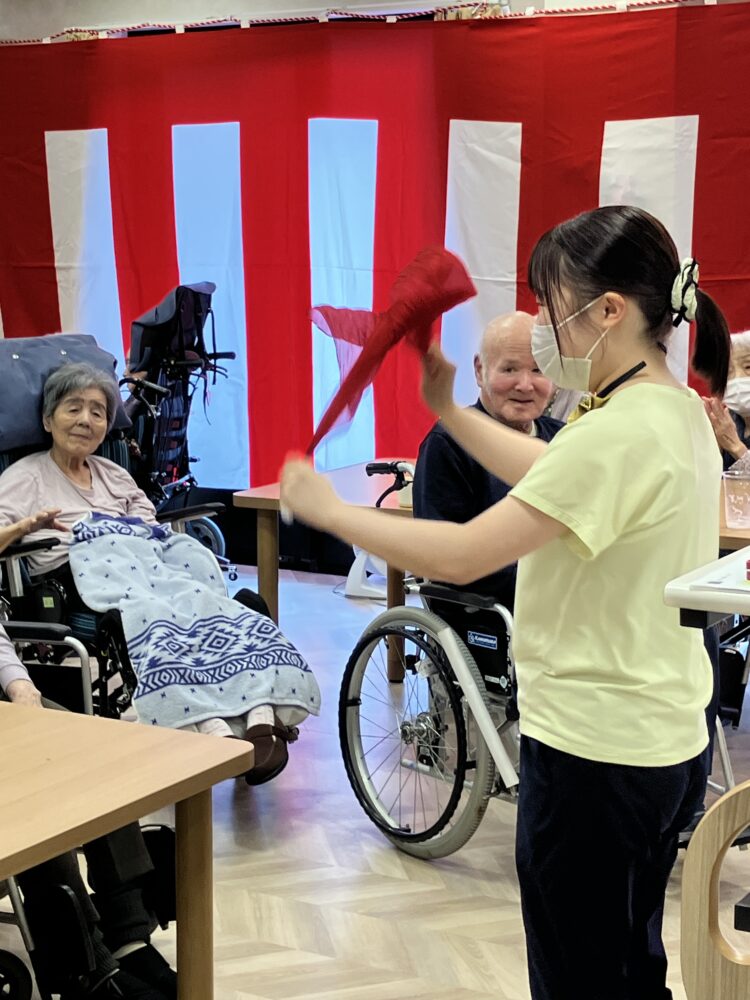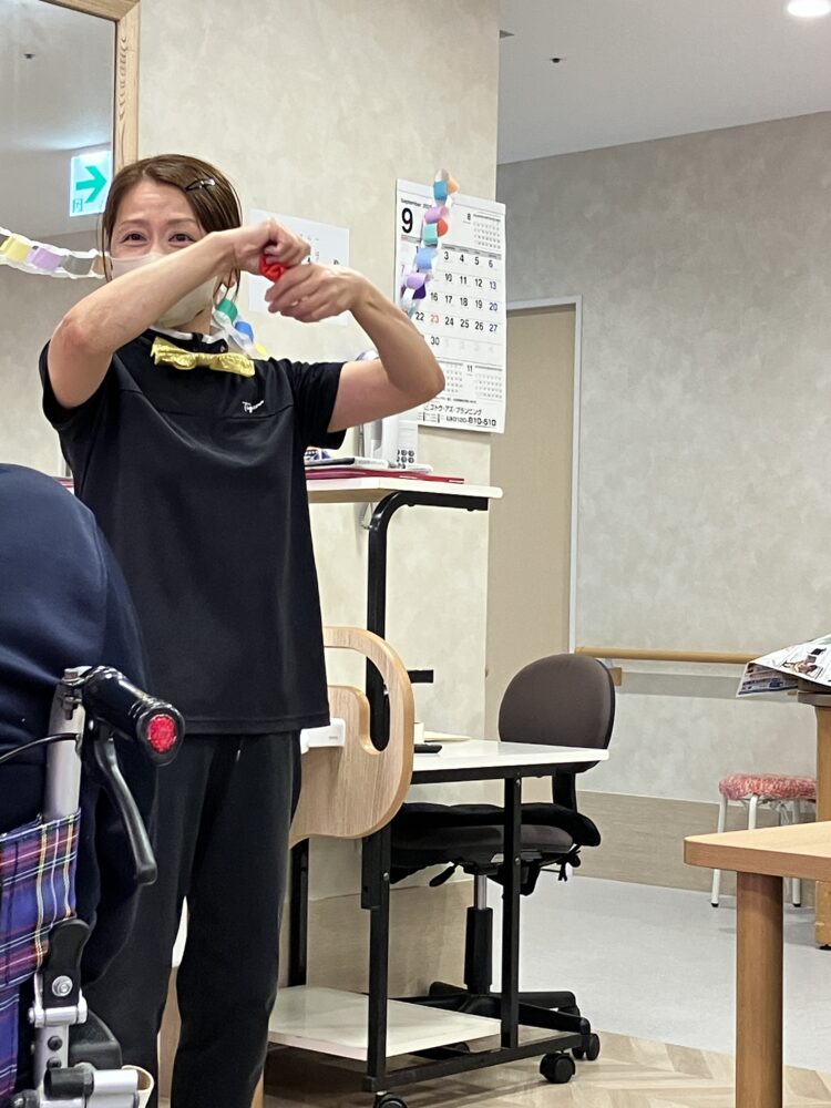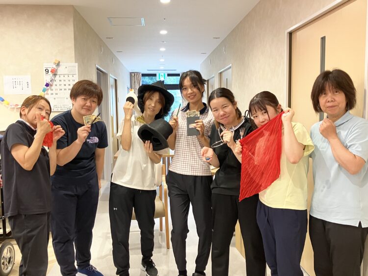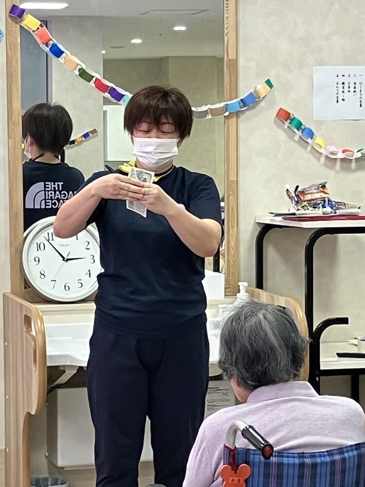 職員の手品で大盛り上がり!!敬老会 椛ユニット
