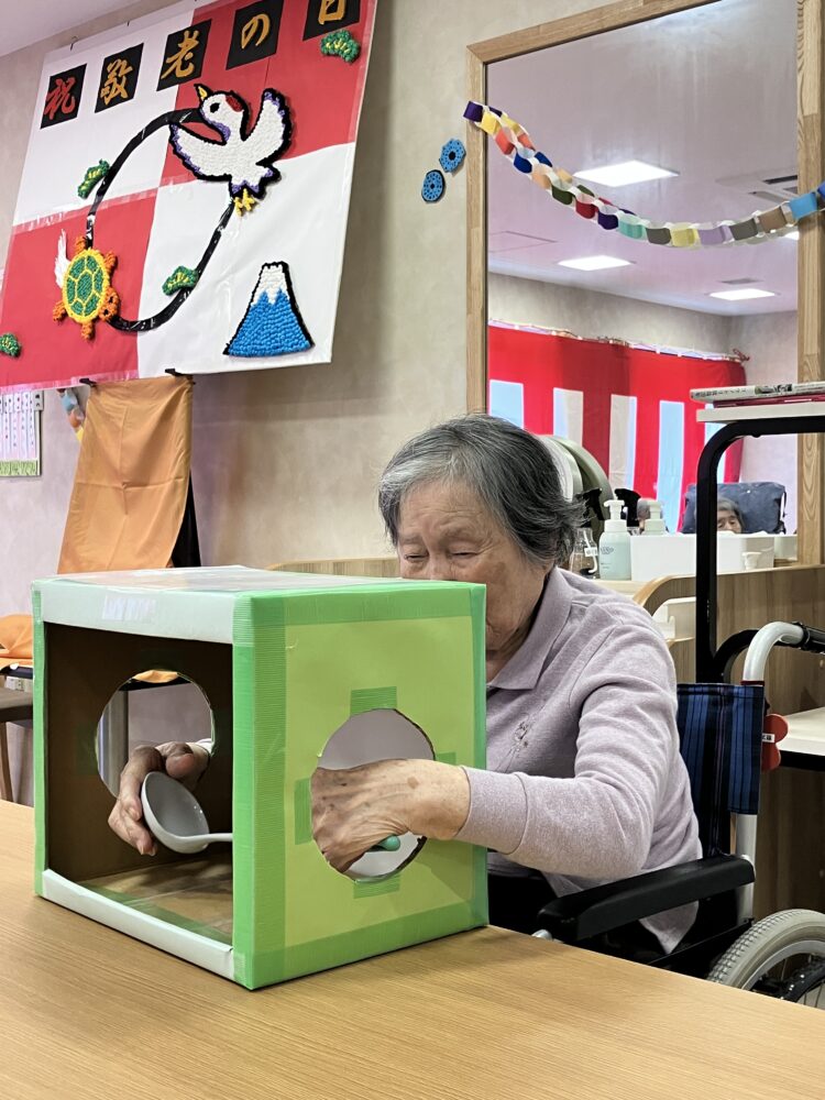 また、ご利用者には「箱の中身はなんですか?」のゲームをしていただきました。