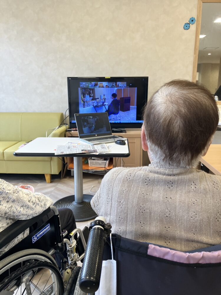 全利用者に参加してもらうことは難しいので、各フロアでオンライン中継を行いました。