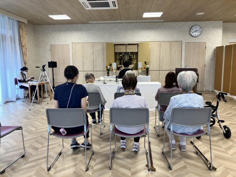 西光寺の村上住職が来園され、読経と法話をいただきました。