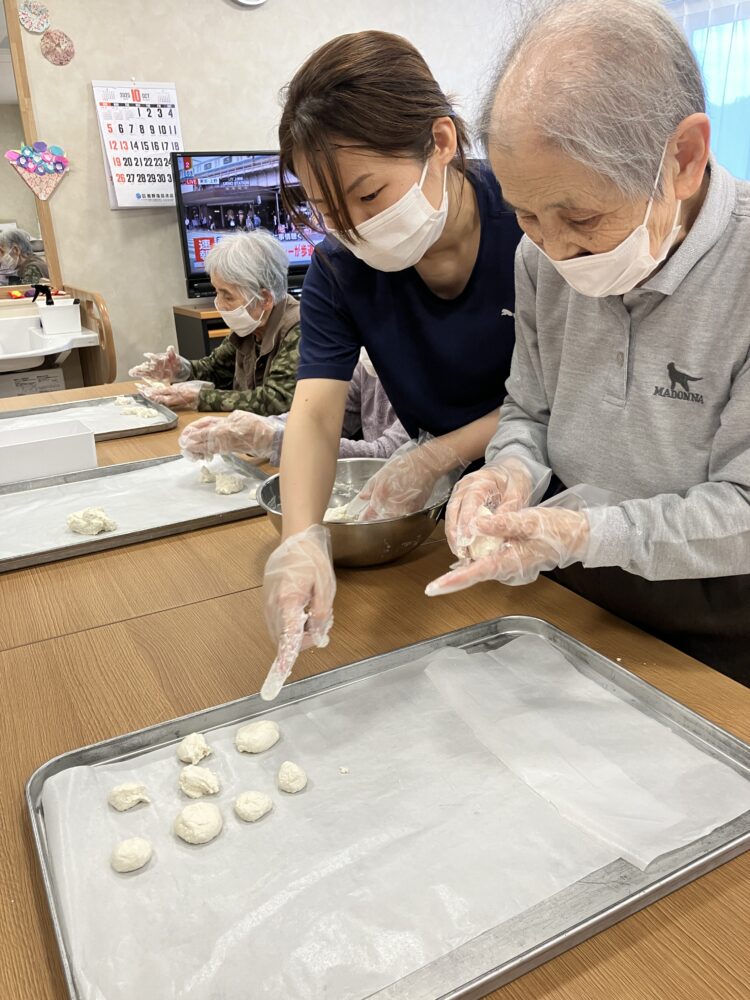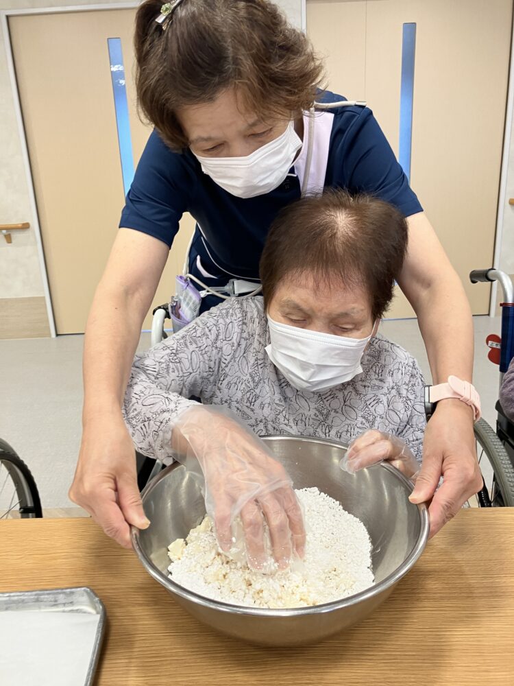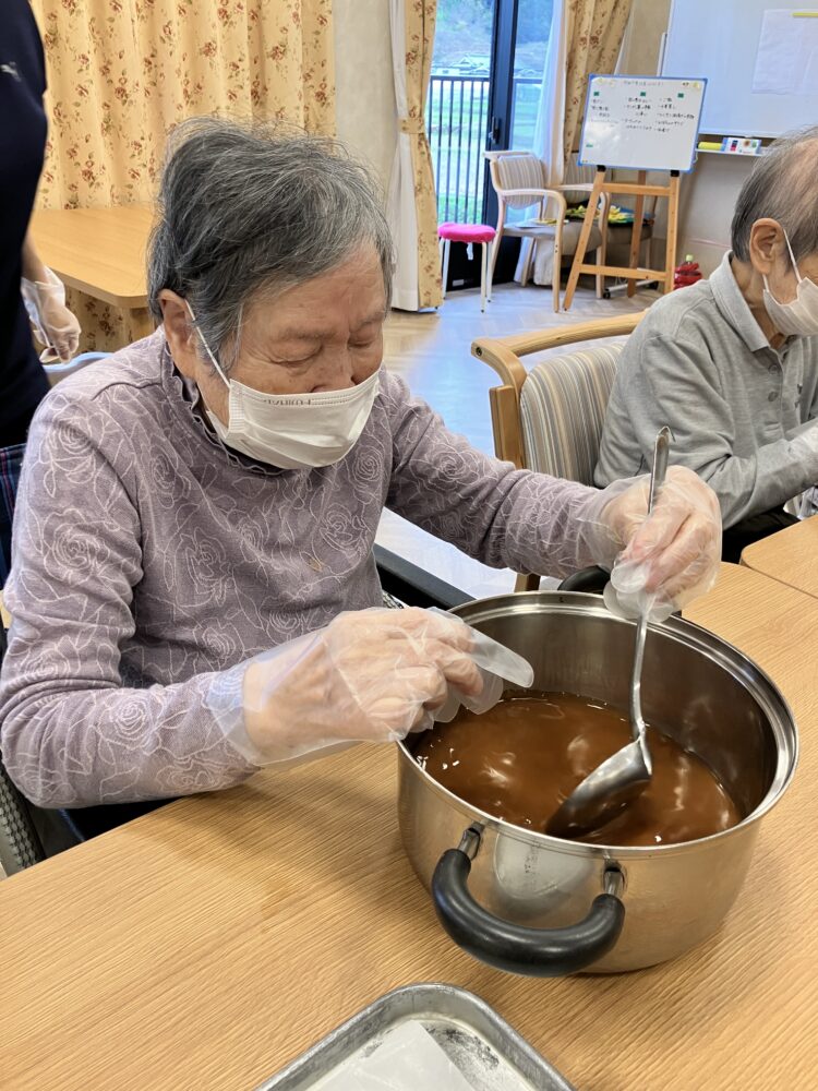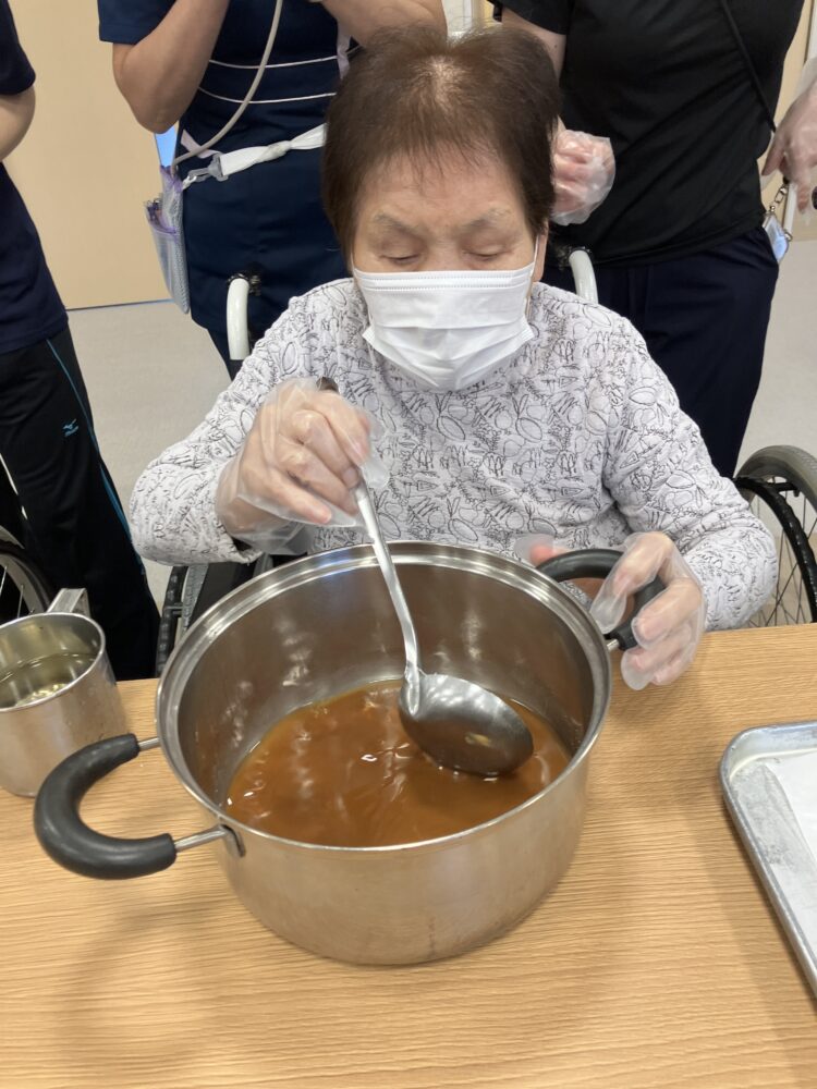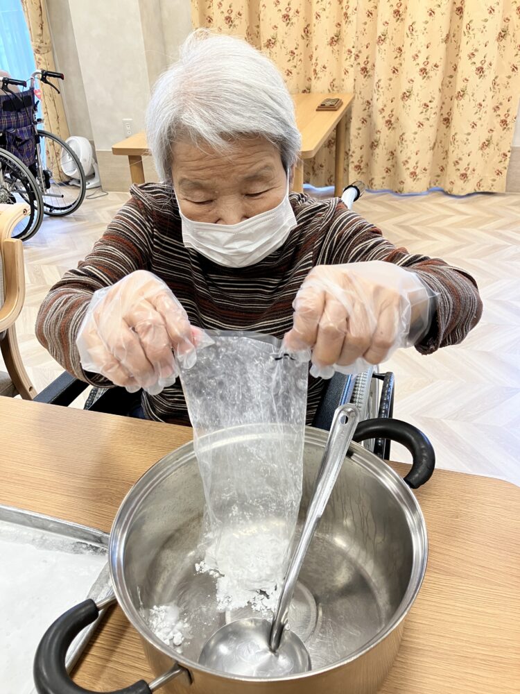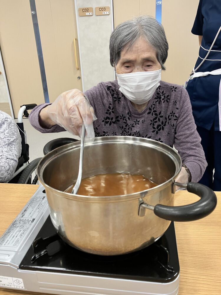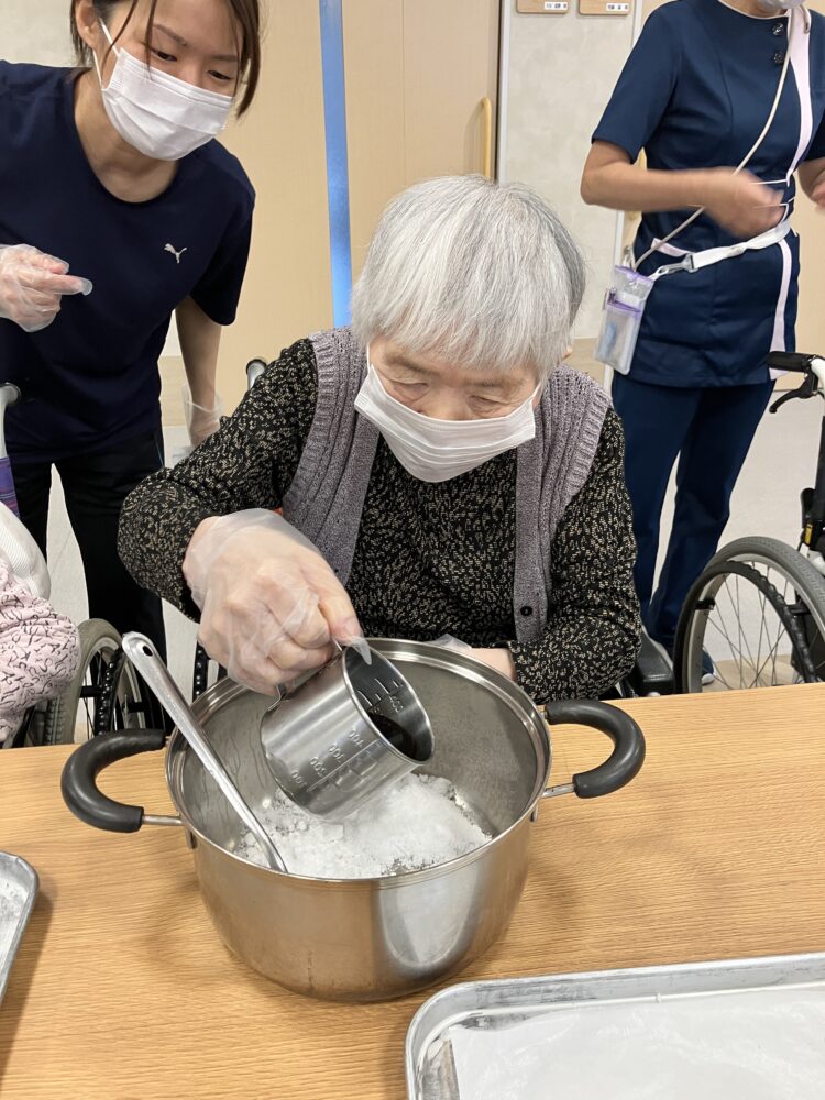あん作りの最中に「しょうゆ、こんなに入れてもええん!?」「美味しくなるかなあ」と、心配されるご利用者も…