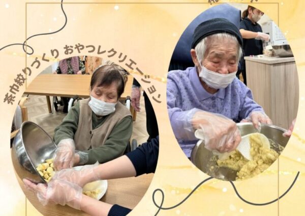 イベント椛ユニットでおやつレクリエーション 甘いさつまいもで茶巾絞り🎶