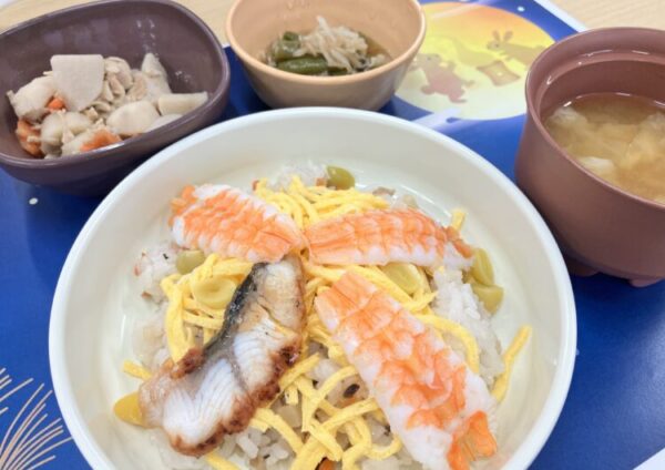 秋を感じる「萩ごはん」を提供しました🫘🍂